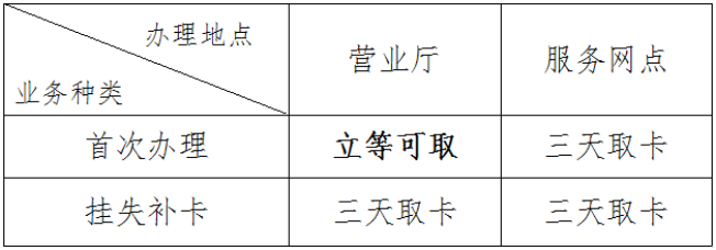 (2)非實名卡:任一服務網(wǎng)點直接辦理,無需證件,遺失不補。